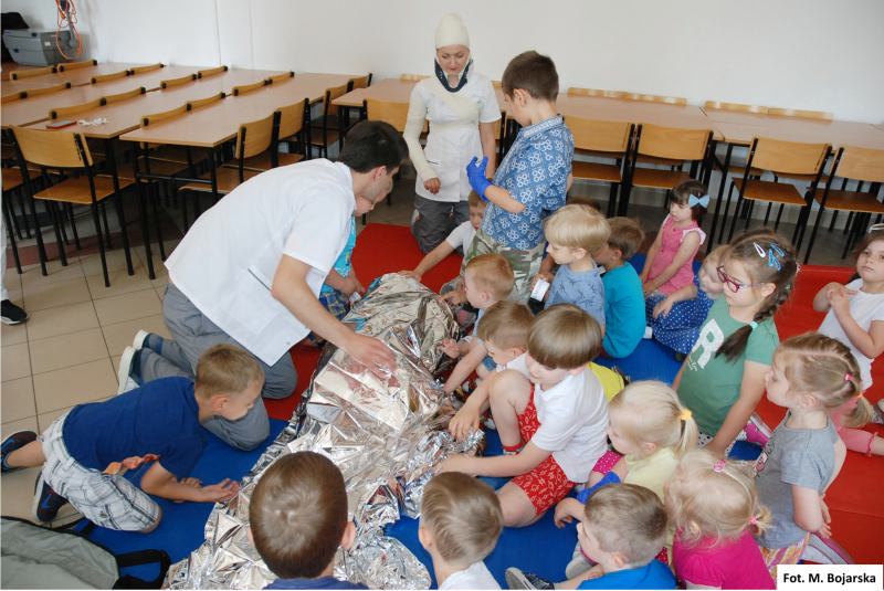 W jednym czasie, w kilku salach i pracowniach umiejętności prowadzone były zajęcia zorganizowane przez kilka zespołów studenckich. I tak, z zakresu ratownictwa medycznego zajęcia prowadzili studenci pielęgniarstwa, będący jednocześnie pracującymi zawodowo ratownikami medycznymi. Zajęcia miały nauczyć dzieci prawidłowego zachowania w sytuacji zagrożenia życia swojego oraz innych osób.