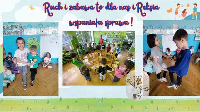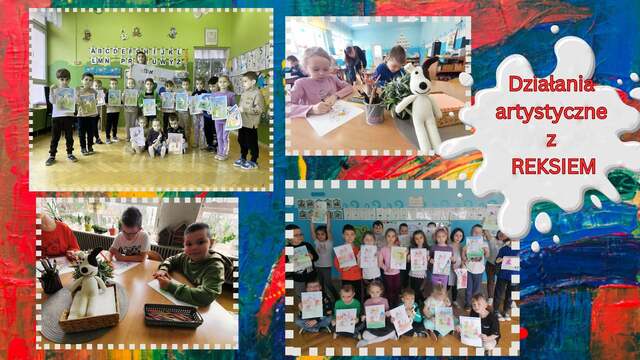 Drugiego dnia wizyty na spotkanie z Reksiem z niecierpliwością czekały dzieci z grupy Zielonej. To był kolejny dzień pełen atrakcji – ćwiczenia, zabawy ruchowe i oczywiście kolejne piękne prace plastyczne na pamiątkę tej wyjątkowej wizyty.