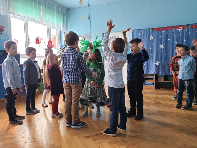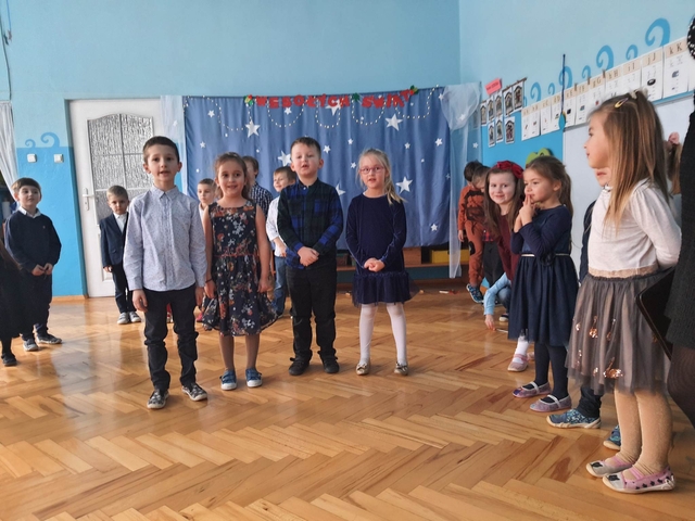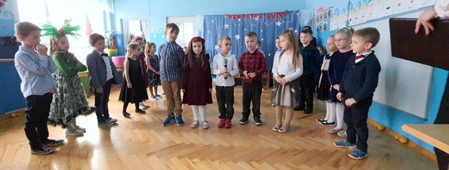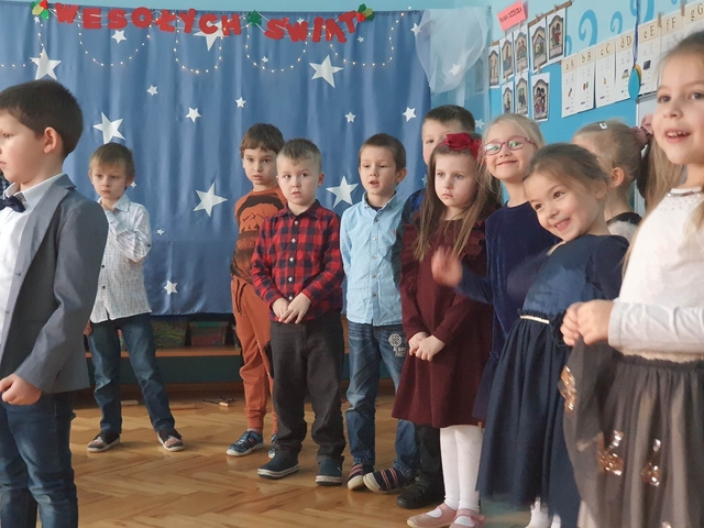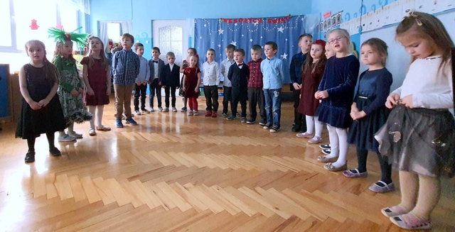 Święta Bożego Narodzenia kryją w sobie niepowtarzalną magię: radość i niecierpliwe oczekiwanie na pierwszą wigilijną gwiazdkę. Dla wielu jest to czas spotkań w rodzinnym gronie, dzielenia się opłatkiem, składania życzeń najbliższym, wspólnego kolędowania. Także u nas nastał cudowny dla wszystkich czas. Nadchodzące święta Bożego Narodzenia były inspiracją do zaproszenia Rodziców dzieci z grupy "Niebieskiej" na spotkanie wigilijne do naszego przedszkola. To rodzinne spotkanie uświetnił program artystyczny przygotowany wcześniej przez dzieci i nauczycieli. Wszyscy mieli przyjemność zasiąść przy wspólnym stole i skosztować pysznego barszczu oraz innych smakołyków przygotowanych na tę szczególną uroczystość.