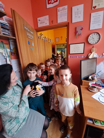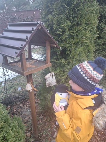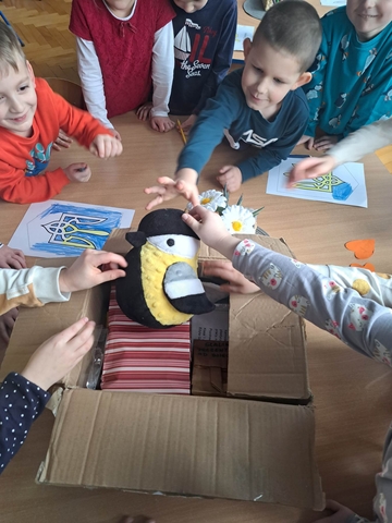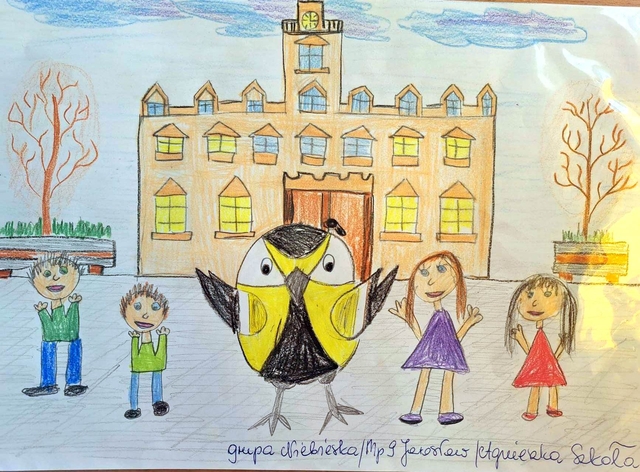 Nadszedł ten wyczekiwany dzień! Dokładnie 14 lutego w Walentynki zawitała do grupy „Niebieskiej” nasza podróżniczka Tusia. Radości z jej przybycia było co nie miara. Na samym początku każdy z nas chciał pogłaskać sikorkę i uścisnąć jej skrzydełko. Postanowiliśmy pokazać Tusi naszą salę, jak i całe przedszkole. Nasza Pani Dyrektor również powitała Tusię bardzo serdecznie. Nasz gość przekazał nam wrażenia z podróży i pobytu u dzieci , które już zdążył odwiedzić. Tusia przywiozła nam od kolegów i koleżanek z Bożkowa pokarm dla skrzydlatych braci i od razu podzieliła się z nami wiedzą o odpowiednim sposobie dokarmiania ptaków.Ta nasza Tusia to bardzo mądra sikorka! Następnego dnia pobytu Tusi postanowiliśmy jej pokazać najpiękniejsze zabytki Jarosławia, park, jak i odrestaurowany Rynek naszego miasta. Po tak długiej, interesującej wyprawie przyszedł czas na odpoczynek i obiadek. Po drodze nie zapomnieliśmy odwiedzić naszej przedszkolnej, ptasiej stołówki. Wraz z Tusią przygotowaliśmy popołudniową ucztę dla jej kolegów i koleżanek. Nasz gość był bardzo dumny i zadowolony, że tak dbamy o goszczące w naszej stołówce ptaszki.Tusia towarzyszyła nam podczas posiłków, zabawy i zajęć. Podziwiała nasze umiejętności plastyczne, taneczne i wokalne. Niestety 2 dni szybko upłynęły i nadszedł czas rozstania. Wierzymy, że jeszcze będziemy mieli możliwość spotkać się i tak miło spędzić wspólnie czas.