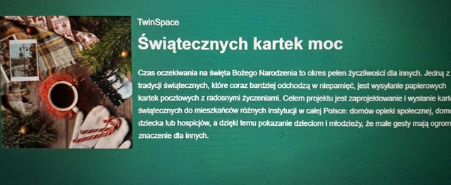 Czas oczekiwania na święta Bożego Narodzenia to okres pełen życzliwości dla innych 😊 Jedną z tradycji świątecznych, które coraz bardziej odchodzą w niepamięć, jest wysyłanie papierowych kartek pocztowych z radosnymi życzeniami. Celem projektu eTwinning "Świątecznych kartek moc", w którym nasza grupa bierze udział jest zaprojektowanie i wysłanie kartek świątecznych do mieszkańców różnych instytucji w całej Polsce: domów opieki społecznej, domów dziecka lub hospicjów, a dzięki temu pokazanie dzieciom, że małe gesty mają ogromne znaczenie dla innych, szczególnie potrzebujących pomocy 🍀❤️❄️