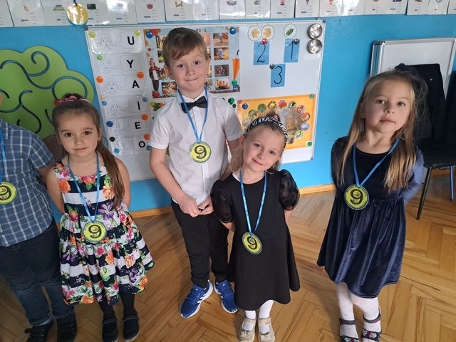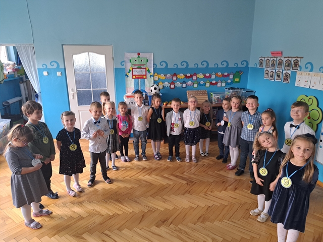 Podczas pasowania dzieci zaprezentowały program artystyczny. Każdy starszak otrzymał medal prawdziwego ucznia klasy "0".