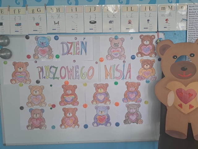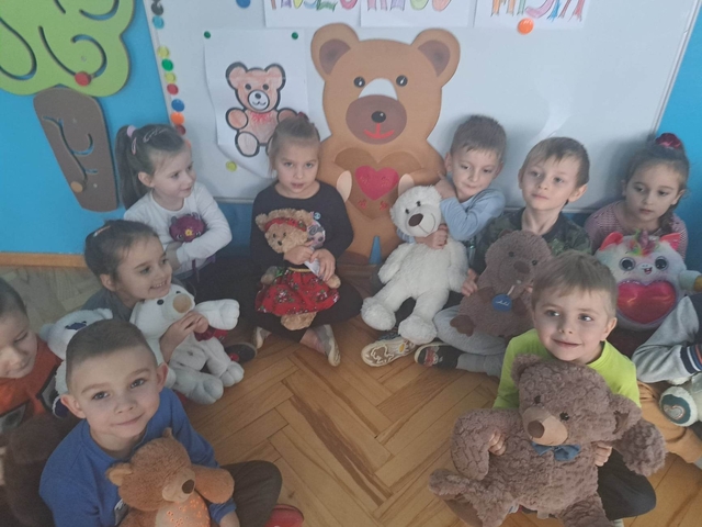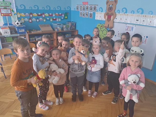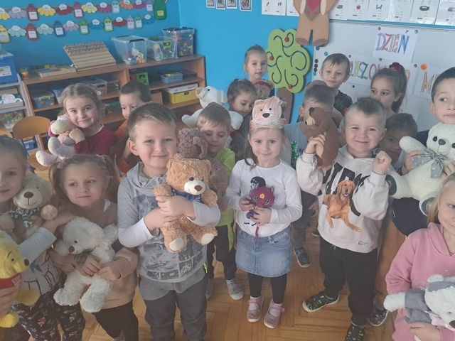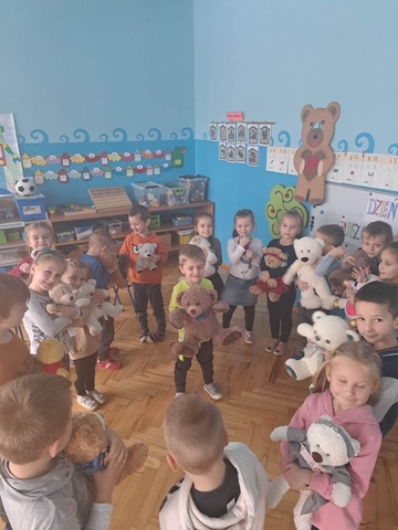 W piatek 25 listopada obchodziliśmy "Dzień Pluszowego Misia" Pomimo coraz to nowocześniejszych zabawek moda na misie nie przemija Tego dnia każde dziecko przyszło że swoim przyjacielem. Obejrzeliśmy film o różnych gatunkach niedźwiadków mieszkających na każdym z kontynentów. Poznaliśmy również historie pluszowego misia, jak i przypomnieliśmy sobie naszych ulubionych misiowych bohaterów z książek i bajek Nie zabrakło też opowiadań, wierszy, tańców i piosenek o tematyce misiowej Ten szczególny dzień przyniósł nam wiele wrażeń, atrakcji i zabawy