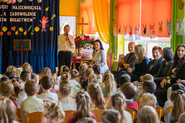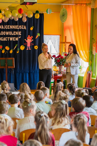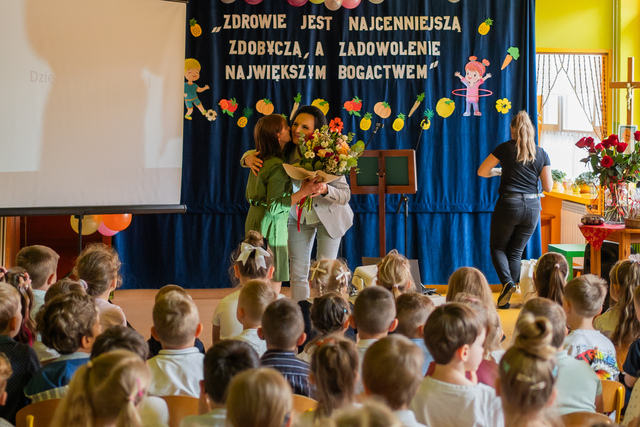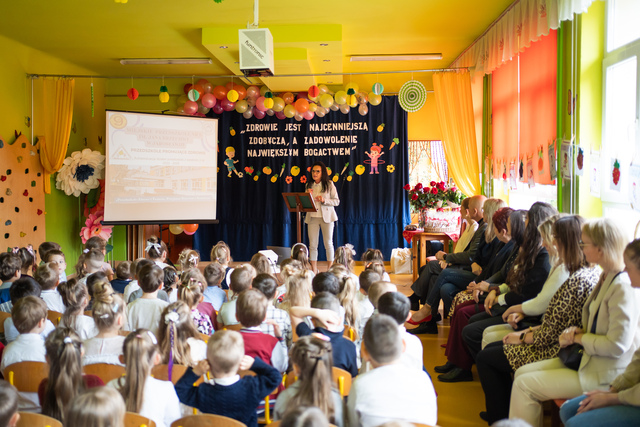 W dniu 19.05.2025r. w Miejskim Przedszkolu Nr 9 im. Jana Brzechwy w Jarosławiu odbyła się uroczystość podsumowania dorobku największych osiągnięć przedszkola do odnowienia Krajowego Certyfikatu Przedszkola Promującego Zdrowie. Pani dyrektor dr Agata Kolasa-Skiba przedstawiła długofalowe, systemowe działania przedszkola zgodne z przyjętą w Polsce koncepcją i standardami przedszkola promującego zdrowie. Przeprowadzona autoewaluacja pokazała rzeczywisty wizerunek Przedszkola Promującego Zdrowie oraz klimat społeczny panujący w placówce. Autoewaluacja wskazała nam kierunki do dalszej pracy oraz do podnoszenia świadomości dzieci, rodziców oraz wszystkich pracowników w zakresie dbałości o zdrowie własne i innych. Pokazała również problemy, które wymagają rozwiązania. Podziękowała za ogromny wkład w promocję zdrowia nauczycielom, pracownikom, rodzicom i dzieciom - doceniła odpowiedzialną pracę pedagoga. W uroczystości wzięli udział: Dyrektor Wydziału Oświaty i Sportu UM - Pani mgr Magdalena Lehnart; Przedstawiciel Podkarpackiego Kuratora Oświaty w Rzeszowie - Pan Tomasz Dziumak - Dyrektor Delegatury w Przemyślu; Dziekan Wydziału Humanistycznego PANS - Pani dr Magdalena Leżucha; Prodziekan Wydziału Humanistycznego PANS - Pani dr Joanna Dworakowska; Prezes Jarosławskiego Stowarzyszenia Oświaty i Promocji Zdrowia - Pani mgr Teresa Krasnowska; Koordynator Rejonu Jarosławskiego Podkarpackiej Sieci Przedszkoli i Szkół Promujacych Zdrowie - Pani mgr inż.Anna Sawicka; Przewodnicząca Rady Rodziców - Pani Kinga Jaroch wraz z przedstawicielami rodziców z poszczególnych grup przedszkolnych. Dzieci wystąpiły z programem artystycznym i przesłaniem prozdrowotnym: